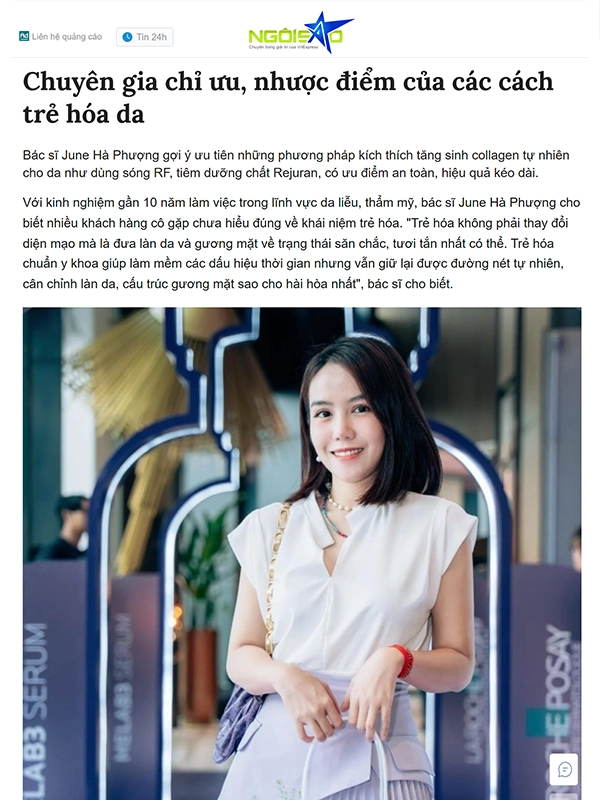 Với kinh nghiệm gần 10 năm làm việc trong lĩnh vực da liễu, thẩm mỹ, bác sĩ June Hà Phượng cho biết nhiều khách hàng cô gặp chưa hiểu đúng về khái niệm trẻ hóa. “Trẻ hóa không phải thay đổi diện mạo mà là đưa làn da và gương mặt về trạng thái săn chắc, tươi tắn nhất có thể. Trẻ hóa chuẩn y khoa giúp làm mềm các dấu hiệu thời gian nhưng vẫn giữ lại được đường nét tự nhiên, cân chỉnh làn da, cấu trúc gương mặt sao cho hài hòa nhất”, bác sĩ cho biết.